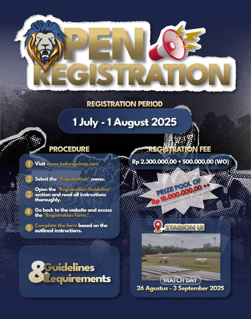 Todung UI Cup 2025 sees football as more than just a game, it is a platform to build solidarity, sportsmanship, and a culture of healthy competition among science and technology students across Indonesia. Carrying the theme “More Than 90 Minutes” and the official tagline #EmbracePossibilitiesBeyondtheGame, the tournament serves as a response to destructive rivalries and aims to foster long-term social impact through collaborationTodung UI Cup 2025 sees football as more than just a game, it is a platform to build solidarity, sportsmanship, and a culture of healthy competition among science and technology students across Indonesia. Carrying the theme “More Than 90 Minutes” and the official tagline #EmbracePossibilitiesBeyondtheGame, the tournament serves as a response to destructive rivalries and aims to foster long-term social impact through collaboration